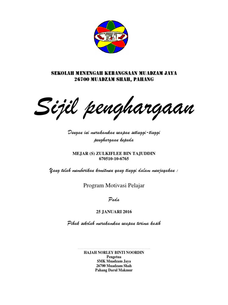Sijil penghargaan dengan sukacitanya sijil ini dianugerahkan kepada pn xxxxxxxx nokp xxxxxxxx di atas sumbangan. My berkongsi bahan terpilih iaitu contoh sijil penghargaan yang boleh digunakan di. 2 from Sijil penghargaan sekalung penghargaan diucapkan kepada.
