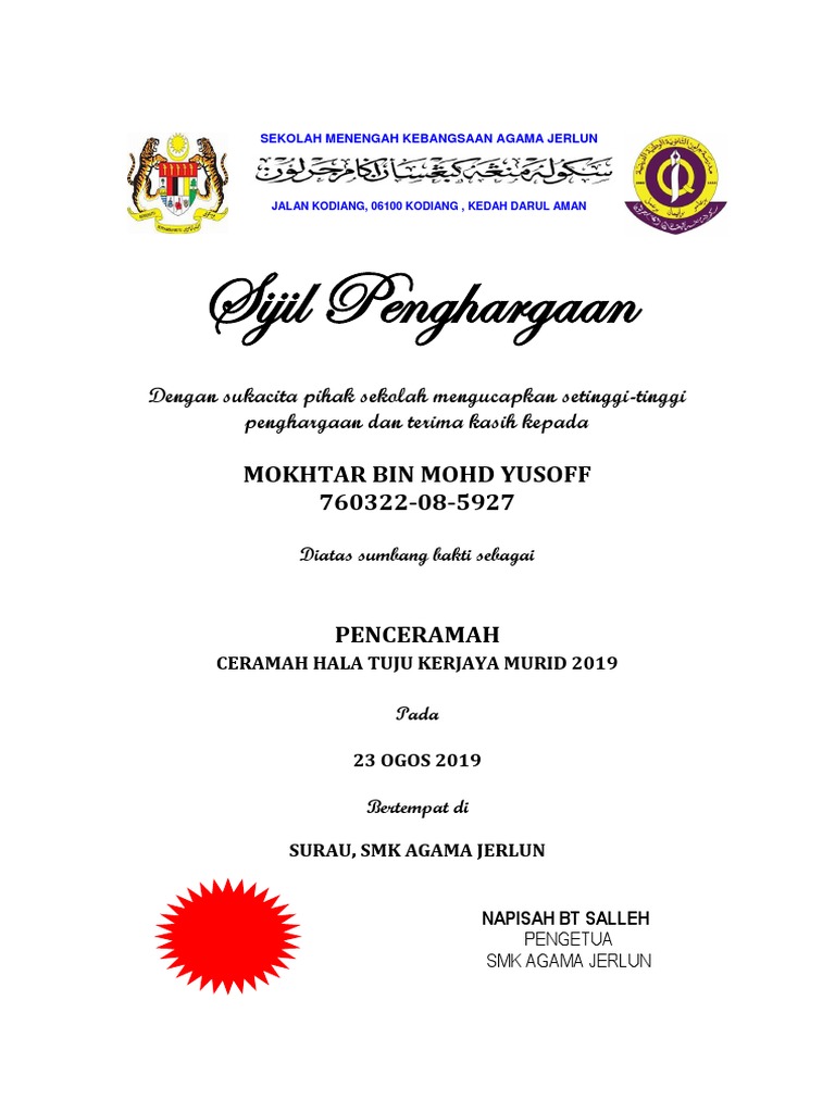 You have just read the article entitled sijil penghargaan kepada penceramah. Sijil penghargaan penceramah download doc. ٢٥ ذو الحجة ١٤٤٠ هـ.